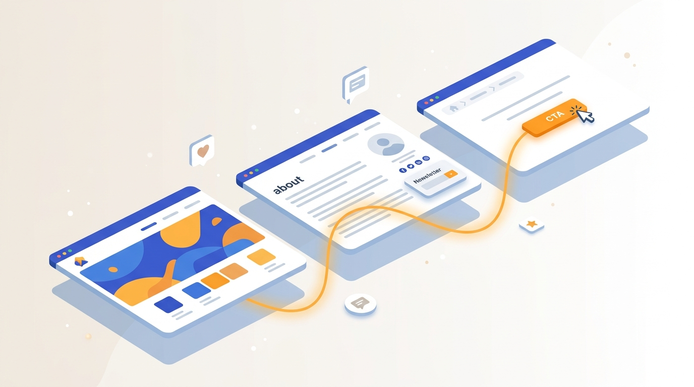 Il y a un contexte, une histoire et un passé — ce que vous avez construit jusqu’ici avec votre activité. Mais il y a aussi ce qui laisse deviner la suite ! Articles de blog en lien avec vos objectifs, réseaux sociaux pour prolonger la relation, newsletter pour entretenir le lien, page contact pour initier un premier échange, demande de démo en ligne pour envisager une future collaboration… Tous ces points de contact racontent cette continuité !