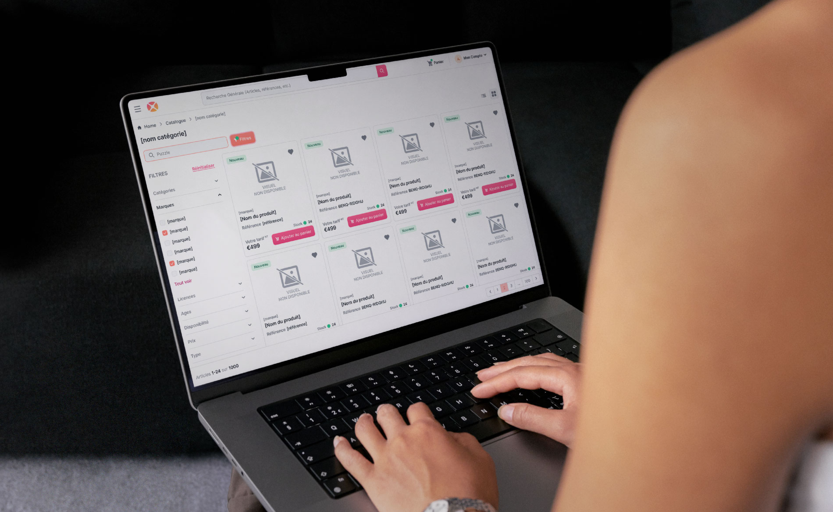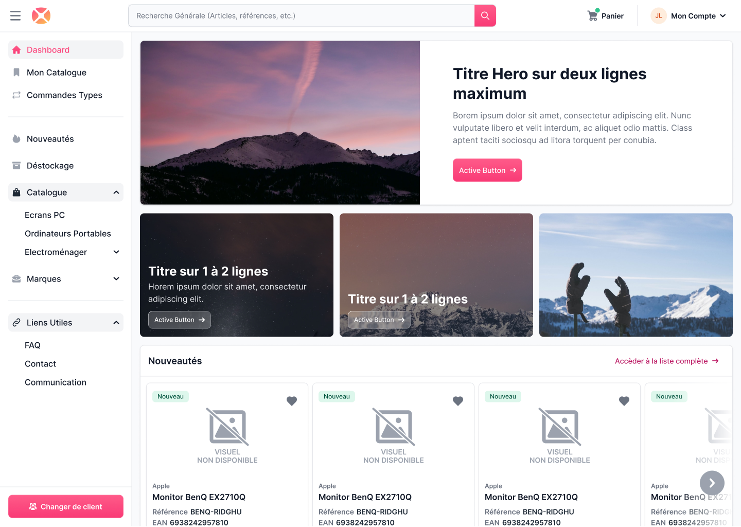 Les clients professionnels B2B ont des impératifs de productivité que l'ancienne version ne satisfaisait plus : besoin de passer des commandes récurrentes instantanément, d'accéder à leurs factures en autonomie et de consulter les stocks en temps réel. Côté administration, l'outil manquait de flexibilité pour animer les ventes (nouveautés, déstockage) ou personnaliser l'expérience par client. L'enjeu était de créer une plateforme capable de gérer des règles métiers complexes (tarifs personnalisés, restrictions catalogue) tout en offrant la fluidité et la rapidité d'une application moderne.